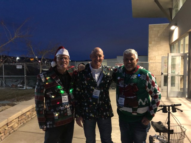 My first service where I greeted was at one of the seven Christmas Eve services. It was so fun wishing seniors, men and women, teenagers and little children a Merry Christmas and a warm welcome to our church. Two of my friends were working with me at one of the doors and wanted us to dress up in similar attire.